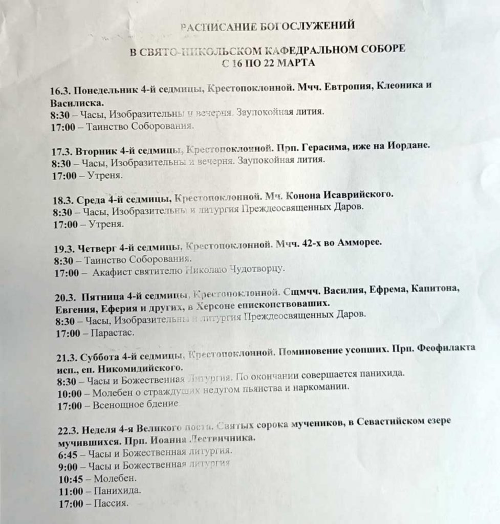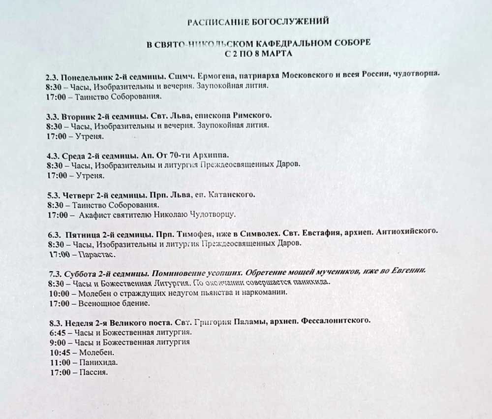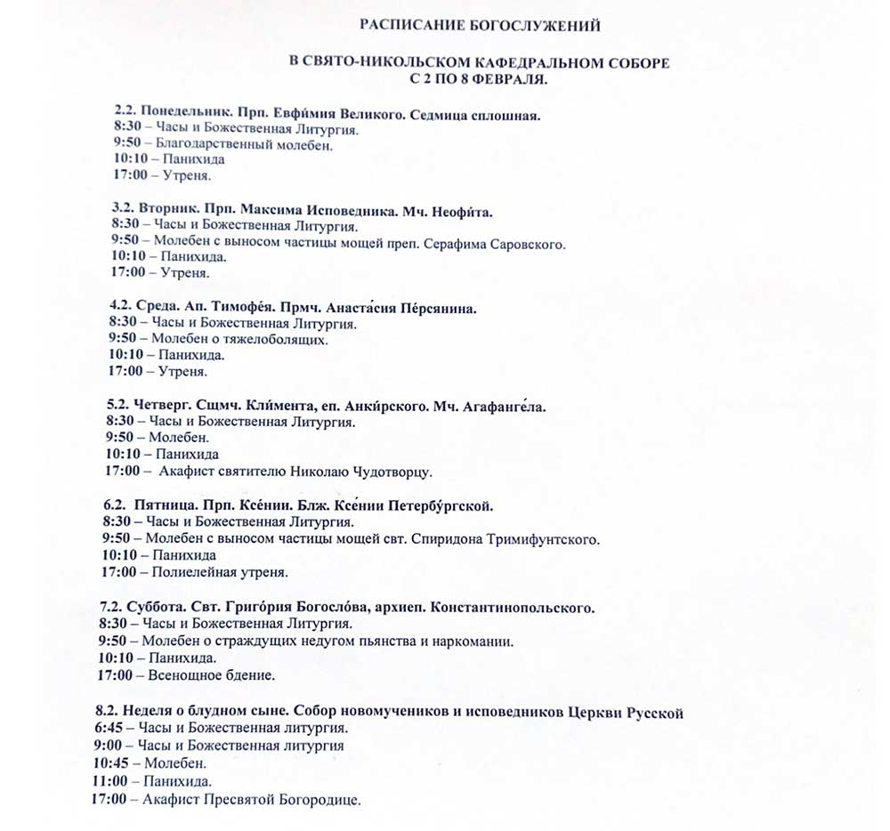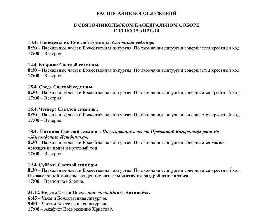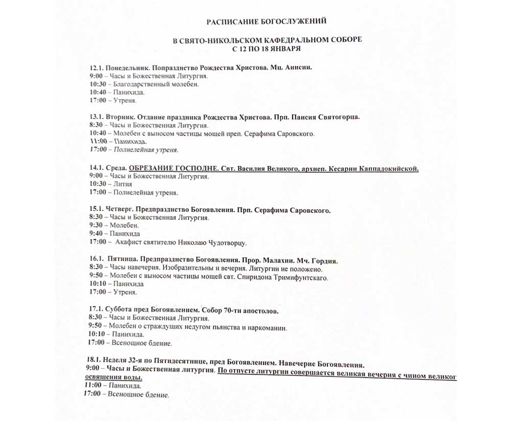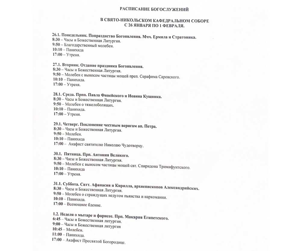 Расписание богослужений